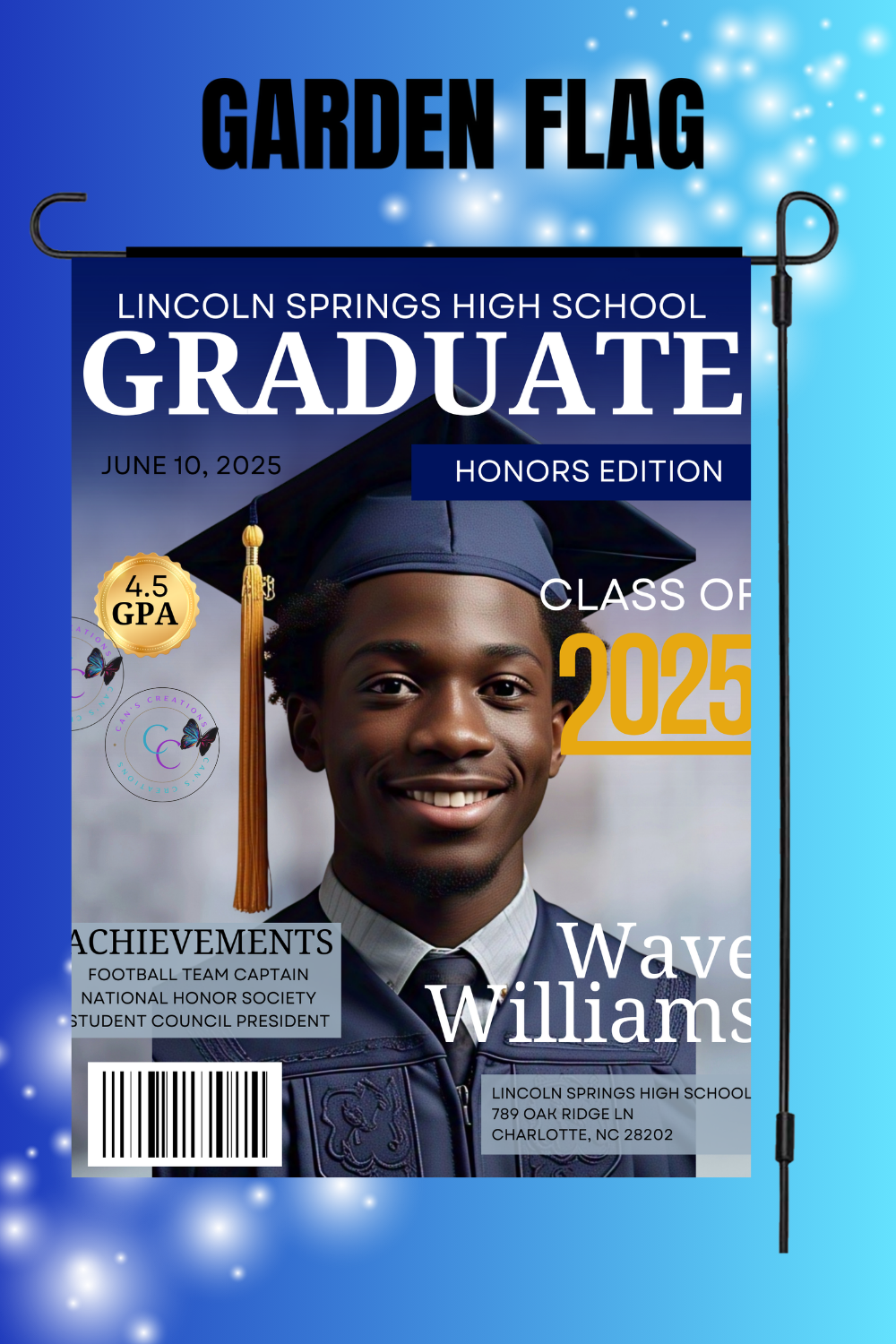 Our custom graduation yard flags are the perfect way to honor your 2025 graduate in a BIG way. Whether it's high school or college, this is their time to shine – and your chance to show them just how proud you are.